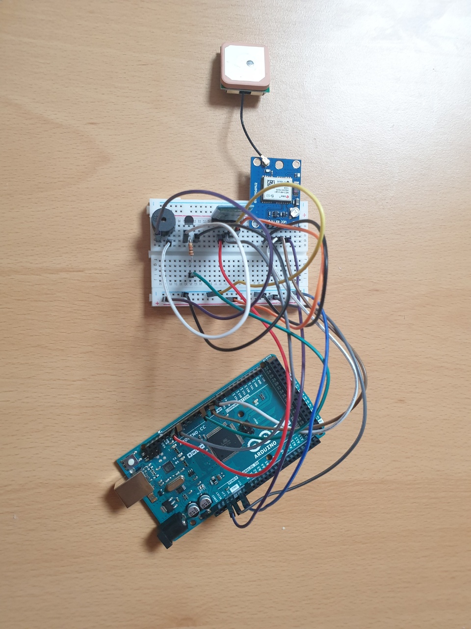 HC-05(블루투스), NEO-6M(gps), 아두이노 핀헤더(1x4) 2.54mm(NEO-6M 납땜을 위해), 피에조 부저, NPN 트랜지스터, 점퍼케이블, 아두이노 MEGA 보드, PC, USB 케이블, 고정저항 1K옴
