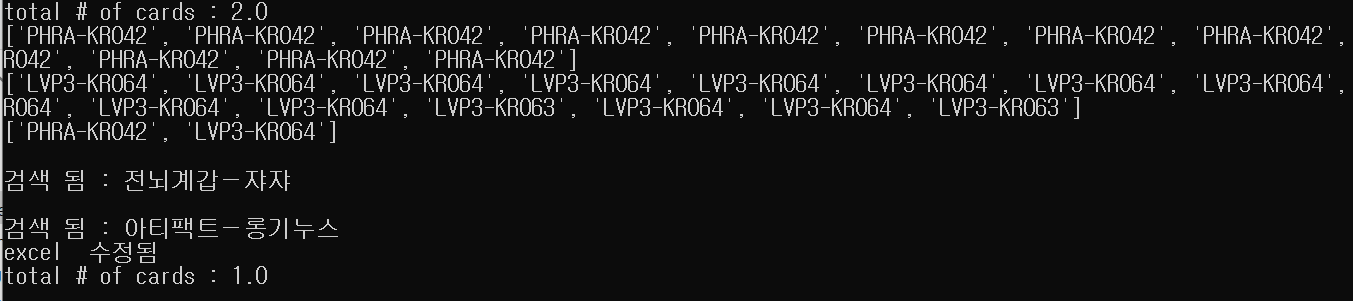 카드가 담긴 사진에서 카드를 추출, 카드에 적힌 일련번호를 식별하여 공식 database에서 검색해 인식된 카드가 어떤 카드인지 식별하고, excel 파일로 기록하는 python 프로그램입니다.