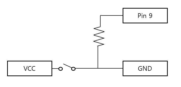 단순하게 VCC와 GND를 스위치로 연결한다면 플로팅 상태가 발생할 수 있으므로 풀다운을 위한 저항(100옴)을 하나 포함시켰다.