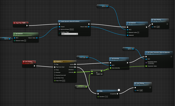 연구의 목적 상 광원은 일정한 주파수로 점멸하는 것을 가정하므로, 언리얼 엔진의 광원을 아래와 같이 프로그래밍하여 점멸하게 하였습니다.