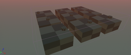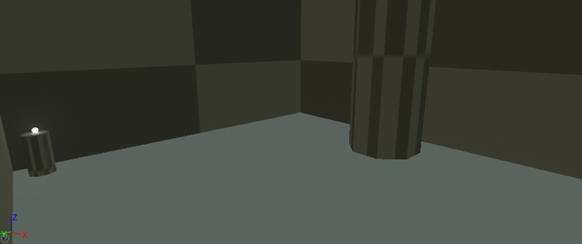 방의 내부 예시, 광원이 왼쪽, 장애물이 가운데, 스폰 장소가 왼쪽임을 확인할 수 있습니다.