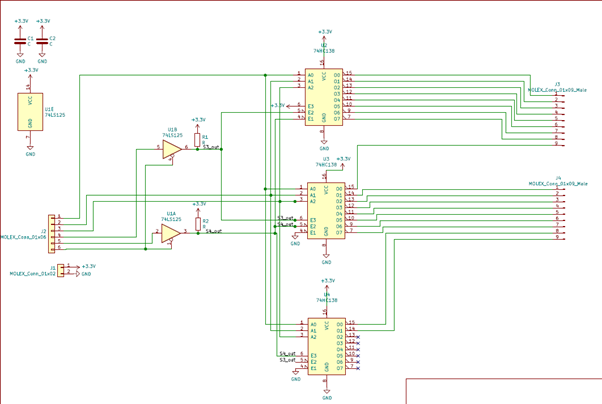 아두이노는 한번에 한개의 온도센서에 접근할 수 있기 때문에 선택한 온도센서만 아두이노에 연결하고 나머지는 잠시 연결을 차단해야 한다. 온도센서의 CS핀이 이 기능을 하는데 CS핀들에 넣어줄 값들을 decoder를 통해 출력한다. 아두이노는 decoder에 이진수를 입력하는 방식으로 연결할 온도센서를 선택한다.