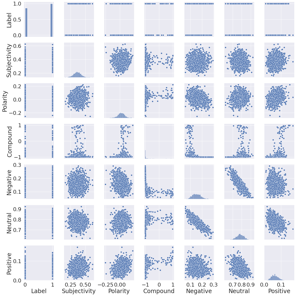 앞서 1dconv를 통해서는 찍는 것과 비슷한 결과를 얻을 수 있었고 vaderSentiment와 textblob을 사용하여 텍스트에 대한 감성분석을 하고 이를 기반으로 선형판별분석, Logistic regression, Support Vector Classifier, Stochastic Gradient Descent, Quadratic discriminant anlaysis, KNN classifier를 이용해 한 결과는 0.48~0.52 수준으로 결국 큰 성과는 얻지 못했다. 하지만 이 결과는 모든 피쳐값(Subjectivity, Polarity, Compound, Negative, Neutral, Positive)를 모두 사용해서 이러한 결과가 나온 것 같다. 실제적으로 관련성을 보인 피쳐값은 Neutral과 Negative 정도가 선형성을 보이고 compound 값의 첨도가 큰 것 외에는 큰 의미를 담고 있지 않는 것처럼 보였다. 그렇기에 feature engineering을 통해 정보를 가공한 후에는 보다 더 나은 정보를 얻을 수 있을 것이다.