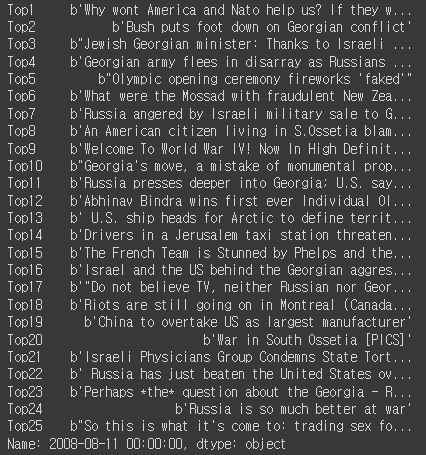 headlines.append(''.join( str(x) for x in df0.iloc[row, 1:26]))