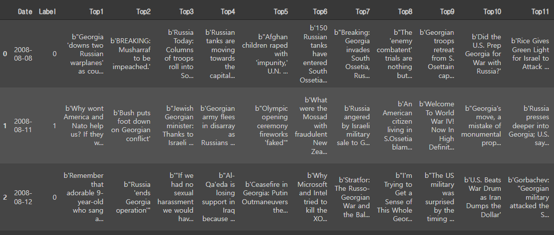 뉴스 데이터는 다음과 같은 형식으로 나타난다.